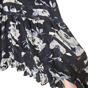 Free People Intimately Floral Lace Trim Asymmetrical Hem Dress Black White S