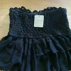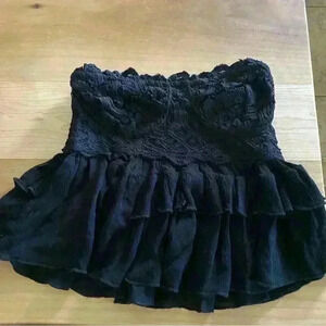 Free People Intimately Free Adella Lace Tiered Coquette Black Boho Top XS