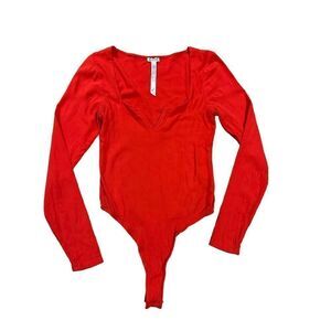 Free People Intimately Free Zoe V-Wire Bodysuit Red Small