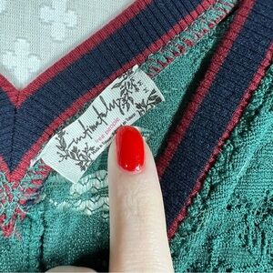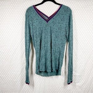 Free People Intimately Green V Neck Floral Lace Long Sleeve Top