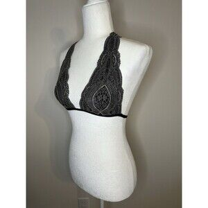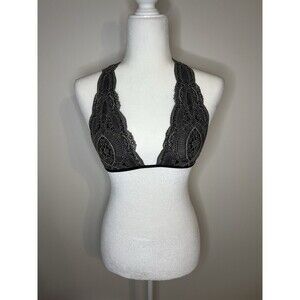 Free People Intimately Halter Neck Bralette XS Black Cream Adjustable Strap