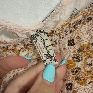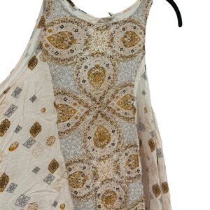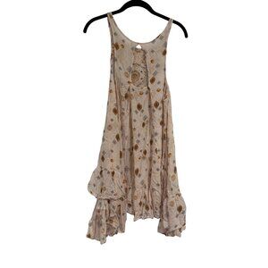 This Free People Intimately sleeveless swing dress is in good condition. The tea combo pattern provides a stylish look, perfect for casual outings. Loose fit. Back keyhole cutout. Ruffled high-low hem. Size S with measurements available in pictures. Material and care tag has been removed.