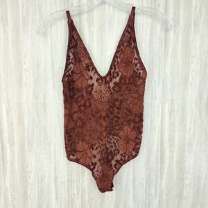 Free People Intimately Lace Bodysuit Womens XS Live It Up Terracota Red V-Neck