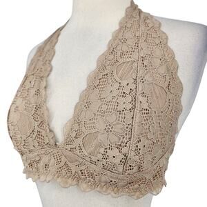 Free People Intimately Beige Lace Halter Bralette Size Large