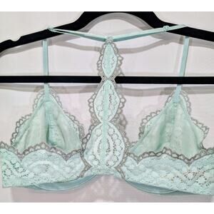 Free People Intimately Lace Underwire Bra Mint Green 32C Front Clasp Racerback