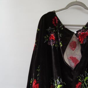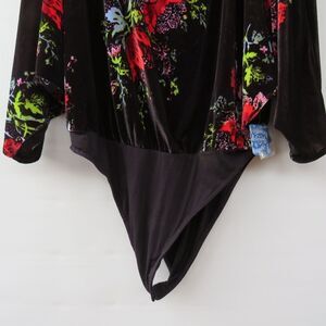 Free People Intimately Large Babe Slouchy Black Velvet Floral Blouson Bodysuit