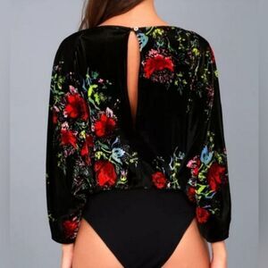 Free People Intimately Babe Slouchy Black Velvet Floral Blouson Bodysuit
