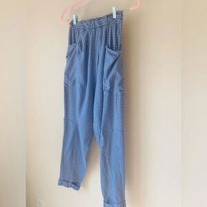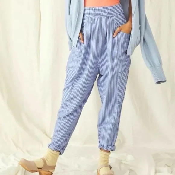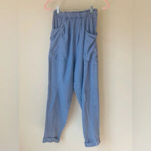 Elevate your loungewear collection with these Free People Let’s Chill Joggers in a size XS. Crafted from 100% cotton, these joggers offer the ultimate in comfort and style. Featuring a relaxed fit with an elastic waistband, they are perfect for relaxing at home or running casual errands. The blue and white striped pattern adds a playful touch, while the side pockets provide convenience for carrying small essentials. In great condition, these joggers are a versatile addition to any wardrobe.