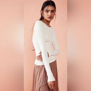 Your favorite seamless tee is now featured in a long-sleeve silhouette with a boat neckline and bold open back.