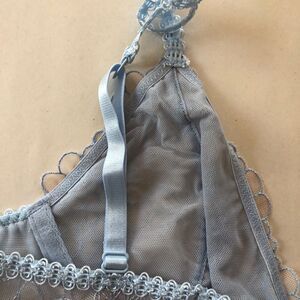 Up for sale is this Free People Intimately Lucia Underwire Bra Blue Hydrandea 34A. New with tags. 90% nylon and 10% elastane. Adjustable straps.