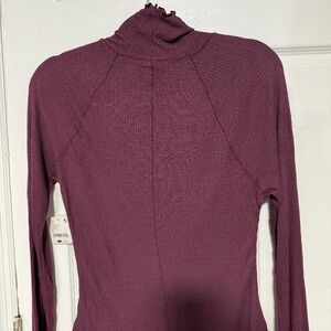 Features: Soft thermal fabrication, high neckline, fitted long-sleeves, lettuce trim, seam detail throughout