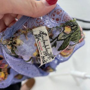 Free People Intimately Marsha Blue Floral Print Lace Slip Mini Dress X-Small XS