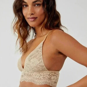 Free People Intimately Maya Longline Lace Bralette. Size small. Nwt. Wheat