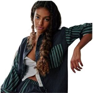 New with tags, this Free People Intimately Milk & Cookies PJ Button-Up brings bold, playful style to your loungewear lineup. Designed in an intentionally oversized fit, this cozy shirt features a mixed print design with polka dots, stripes, and contrast patchwork for that effortless, off-duty aesthetic.