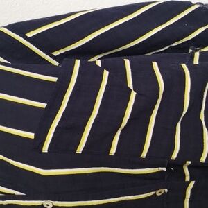 Free People Intimately Navy Yellow White Buttondown Short Sleeve Oversized Small