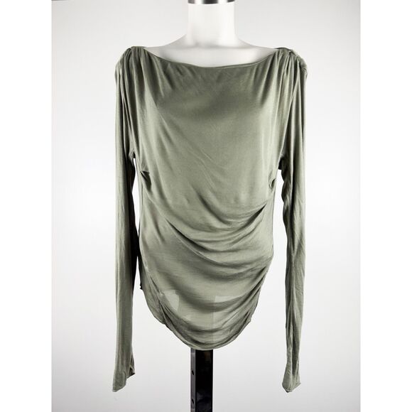 Free People Intimately Night We Met Ribbed Ruched Top Long Sleeve Large Olive
