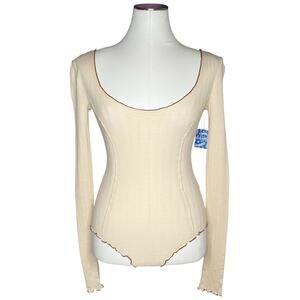 Free People Intimately Nikita Long Sleeve Bodysuit in Almond size XS.