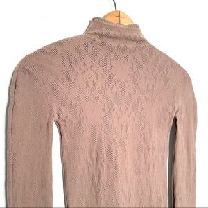 Excellent condition! Color is smoked truffle (color is like the stock photos). Lovely for layering, this perfect long-sleeved top is featured in a slim, mockneck silhouette with pinhole-cut detailing throughout and semi-sheer design.