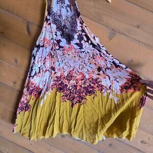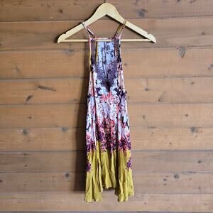 Free People Intimately Ochre Floral Lace Mini Dress XS Boho Cottagecore Trapeze