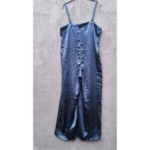 Free People Intimately Oh My Shine Satin Jumpsuit M Blue Side Buttons NWOT
