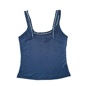 Free People Intimately Only You Ribbed Lace Trim Tank Top Navy Blue Womens Size L