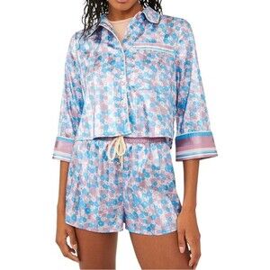 Free People Intimately Pillow Talk Satin Short Pajamas in Cool Lavender Combo