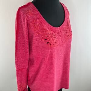 Free People Intimately Pink Long Sleeve Eyelet Back Cut-Out Cotton Top Size XS