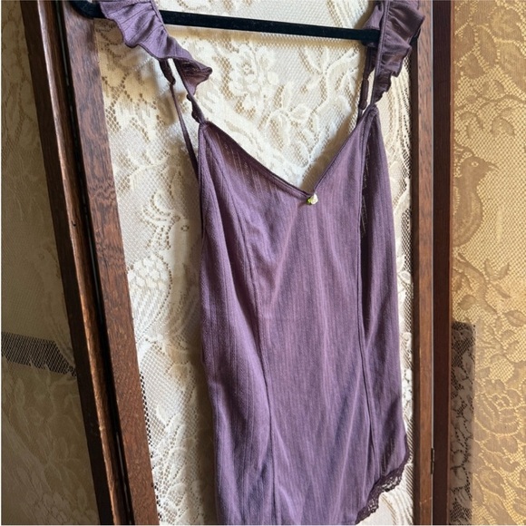 Free People Intimately Purple Ribbed Bodysuit Ruffle Tank Sleeve Size Medium