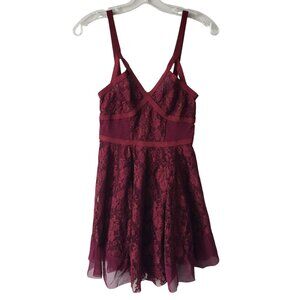 Free People Intimately Red Burgundy Lace Bandage Fit and Flare Mini Dress Y2K XS