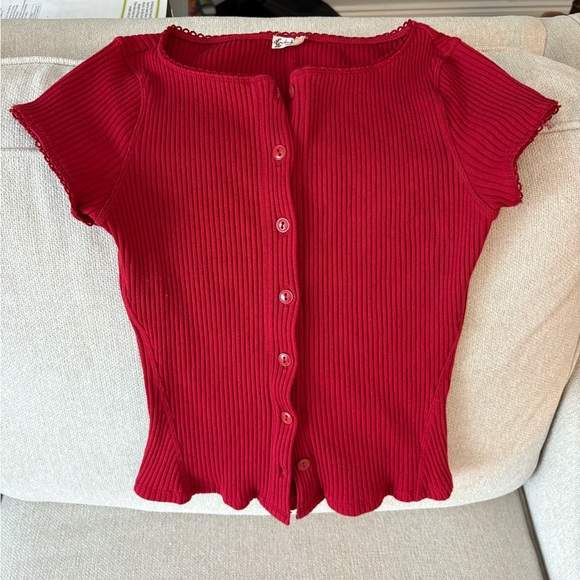 Free People Intimately Red Ribbed Button-Down Shirt