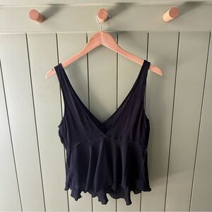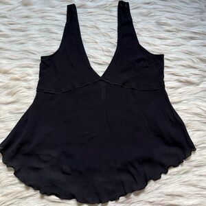 Swing tank by Free People in Black. V neck and back. Semi-sheer. Swing silhouette. Gently worn with no visible flaws. Measurements in photos.