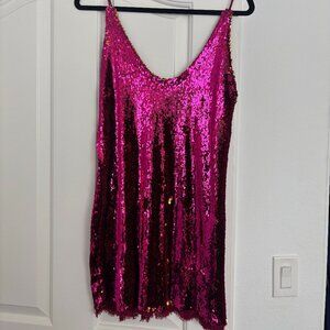 Free people mini pink and gold sequin seeing double statement dress. Great preloved condition - worn once.