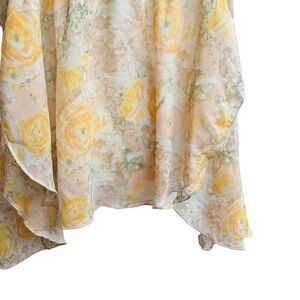Free People Intimately Sheer Floral Top with Lace Trim and Tulip Hem, Size Med