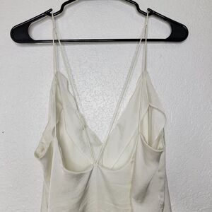 Free People Intimately Size Large Ivory White Sensual Satin Scallop Deep V Cami