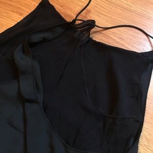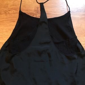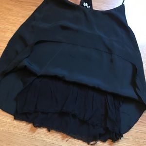 NWT. Looks great on - loose fit, but flattering. Two layers - bottom layer is a sheer fabric with tattered hem, top layer is a silky smooth fabric - breathable, lightweight. Super sexy tank! Size is XS - will also fit size small.