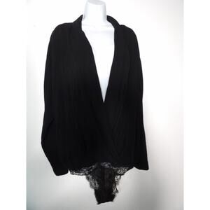 Free People Intimately Turnt Large Body Suit Deep V Crossover Black New NWT