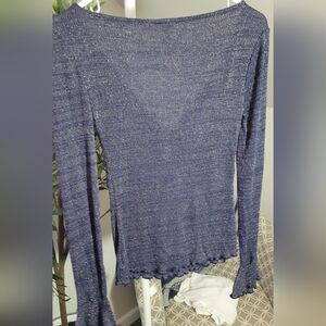 Free People Intimately V Neck knit front bow tie flutter cuffs slits size XS