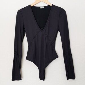 Free People Intimately Victoria Plunge V Neck Bodysuit S Long Sleeves Stretchy