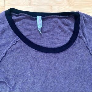 A purple layering blouse/top perfect for layering or lounging. Raw edge hem. Lightweight. Perfect to dress up or down.