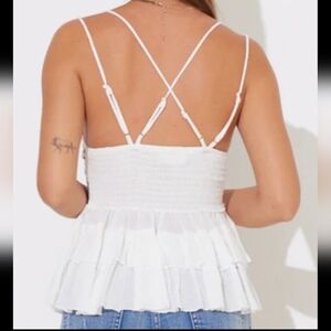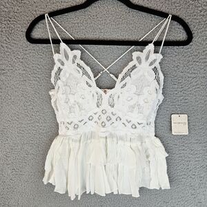 Free People Intimately White Adella Lace & Ruffle Cami Sz S Smocked Adj Straps