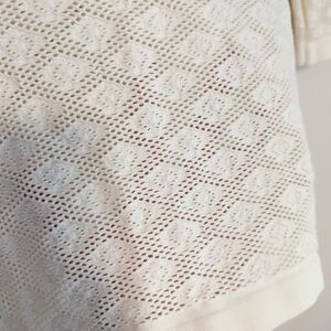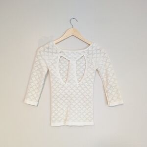 Look at that back! Love the soft creamy color and all the little details, but am really in love with the unique style of the back. Great layering piece. Perfect condition. Fit XS and S.