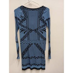 Free People Intimately Womens Bodycon Mini Dress M/L Blue Printed Long Sleeves