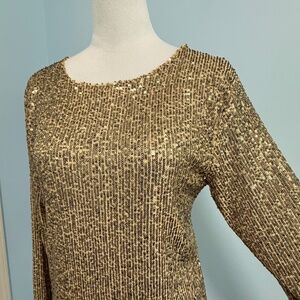 Free People Intimately Women's Gold Sequin Long Sleeve Pullover Top Size L.