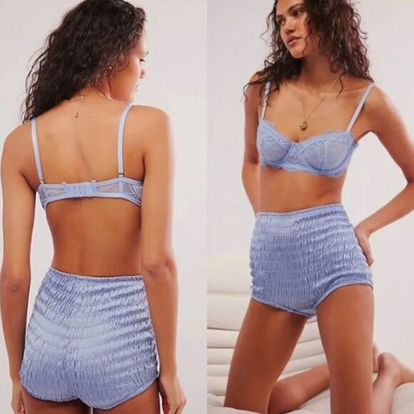 Free People Intimately Ruched Silky Shorties Short Blue Stretch Sz Small NEW