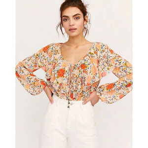 Free People Intimates Bodysuit Size Small Say it to Me Orange Floral Ruffle Boho