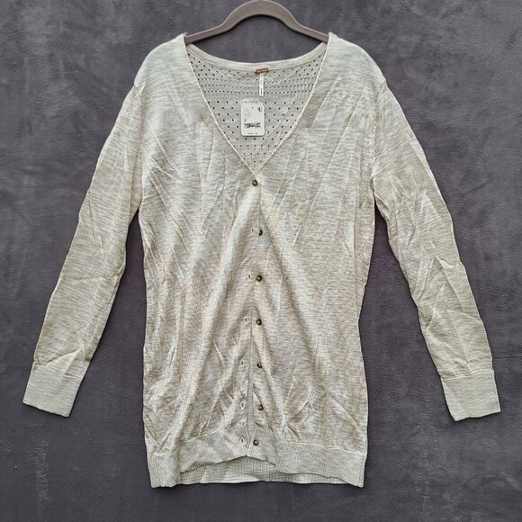 Free People Into The Night LS Tunic Cardigan Sweater S Beige Boho Button NWT