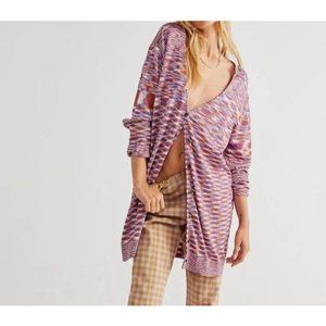 Free People Into The Night LS Tunic Cardigan Sweater XS Purple Multicolor NWT $98