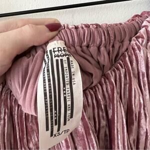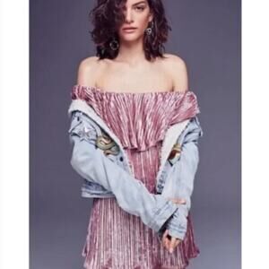Free People "Into the Night" Pink Pleated Velvet Off-the-Shoulder Mini Dress