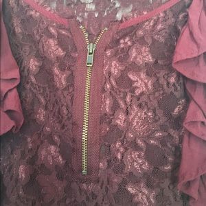 Interesting and unique lace Free People top! This top has two different types of lace and a zipper detail on the bust. This top is slightly older (I think 6 or 7 years old) but I have only worn it a few times and kept it in great condition! Purchased from Nordstrom.