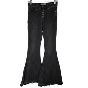 Free People Irreplaceable High Waisted Button Fly Flare Jeans Black Galaxy 26x32